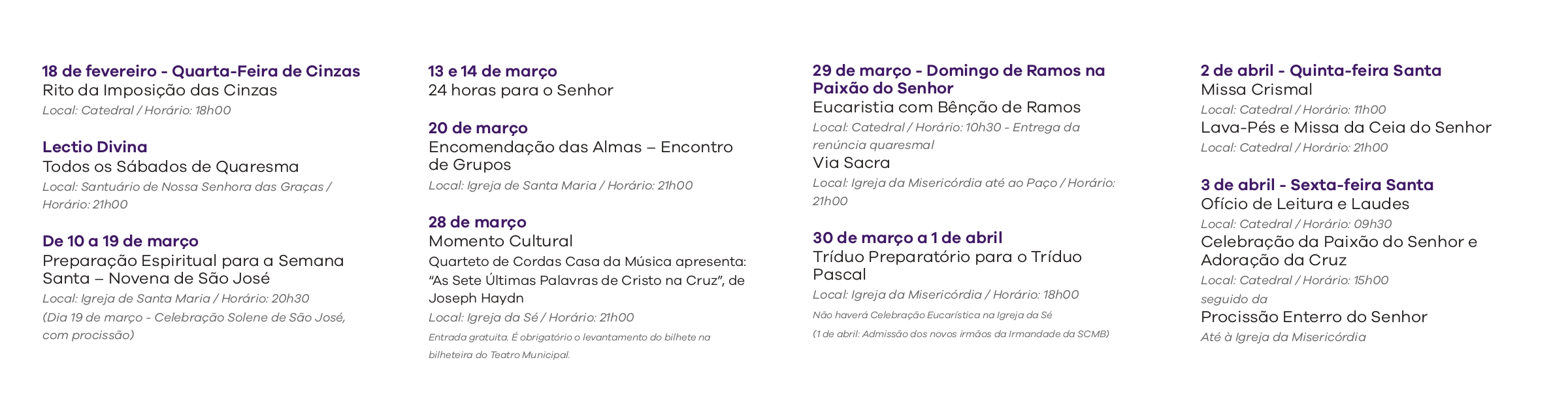 As celebrações mais importantes da nossa irmandade nesta semana são: